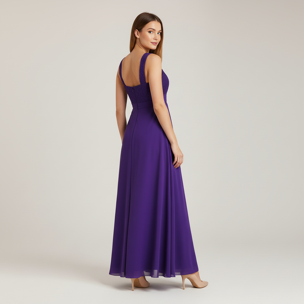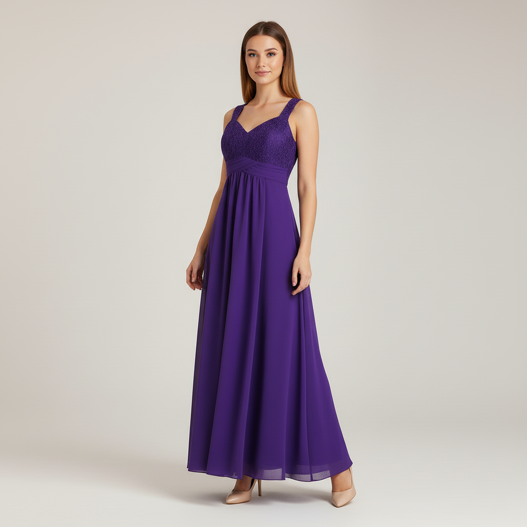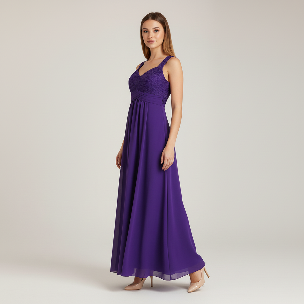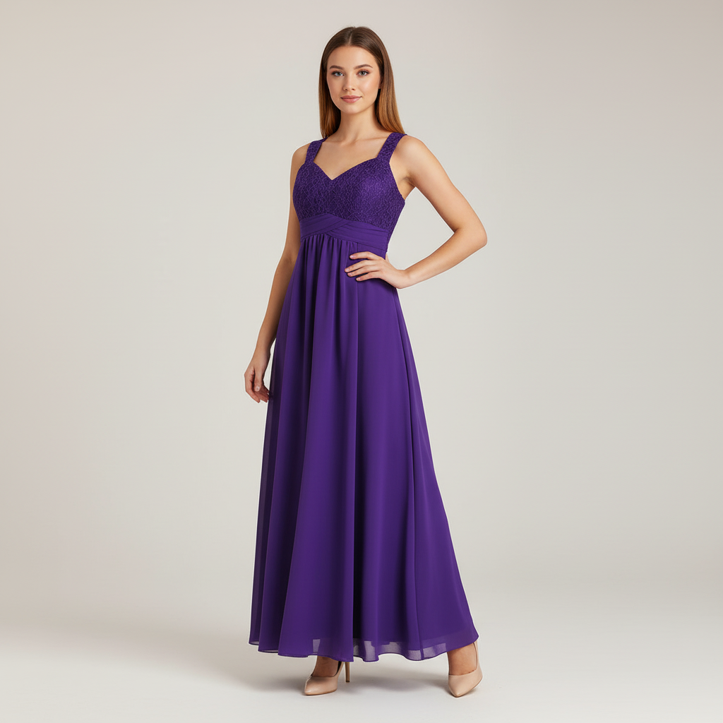 Lila Kleid mit Blumenspitze und Chiffon