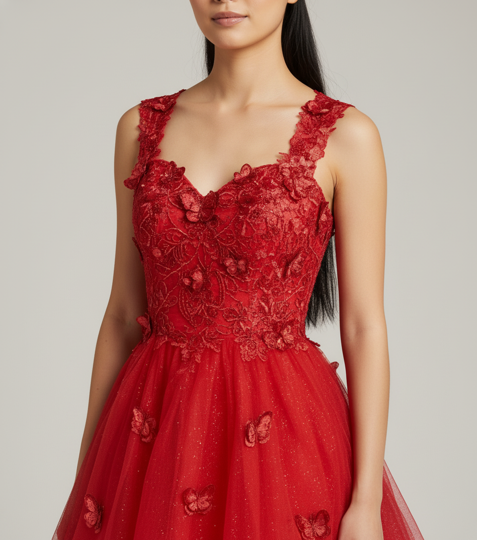 Materialien: Unsere Jugendweihe Kleider bestehen aus hochwertigen Stoffen wie Chiffon, Tuell, Satin und Spitze. Jedes Material wird sorgfaeltig ausgewaehlt fuer optimalen Tragekomfort und eine elegante Optik am grossen Tag.